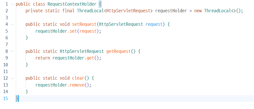 ThreadLocal 변수 requestHolder는 HttpServletRequest를 저장합니다.